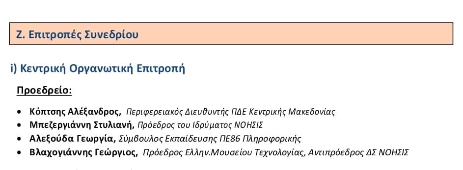 Αποτελεί ιδιαίτερη τιμή για το Ελληνικό Μουσείο Τεχνολογίας – ΕΜΤ η συμμετοχή του μέσω του προέδρου του κ. Βλαχογιάννη Λ. Γεώργιου στο προεδρείο της Κεντρικής Οργανωτικής Επιτροπής του Μαθητικού Συνεδρίου Πληροφορικής το οποίο θα διεξαχθεί από 2 έως 5 Απριλίου 2024 στο ΚΔΕΜΤ-ΝΟΗΣΙΣ.